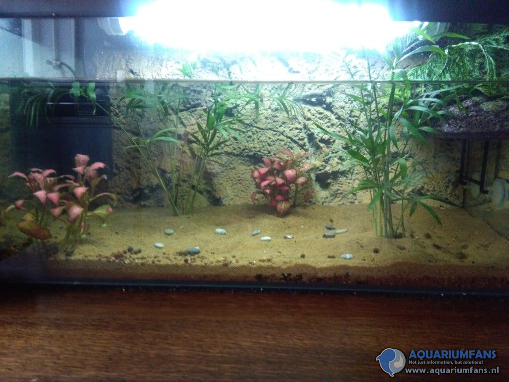 • Een beginnersaquarium, hij draait nog maar anderhalve week en is nog niet klaar voor vissen,