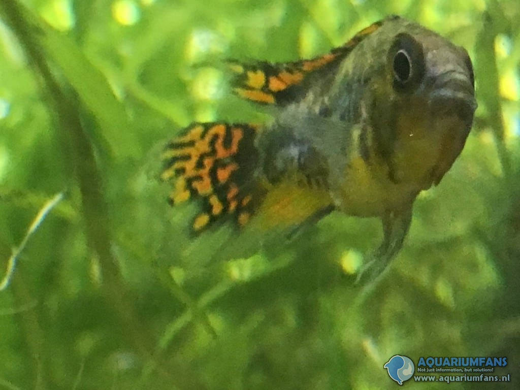 Ik heb een koppel apistogramma cacatuoides erin, de kleuren vind ik erg mooi en het gedrag in de paaitijd is heel mooi