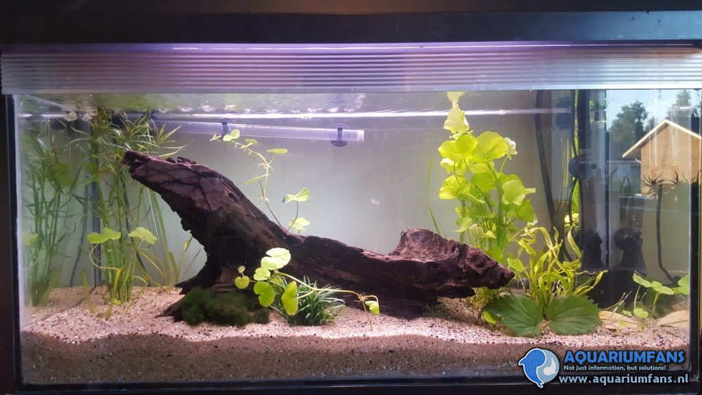 Zo te zien een echte liefhebber. Je garnalen hebben in ieder geval de ruimte en je bak is heel decoratief ingericht. Mooi stuk hout waarop de garnalen kunnen scharrelen. Waarom heb je er geen achterwand in gezet? Die kan je lekker met mos laten begroeien en het geeft de garnalen nog veel meer bewegingsoppervlak. Maar goed zoals ik al zei, ze hebben een flinke ruimte. Veel succes met de kweek van deze prachtige diertjes !!