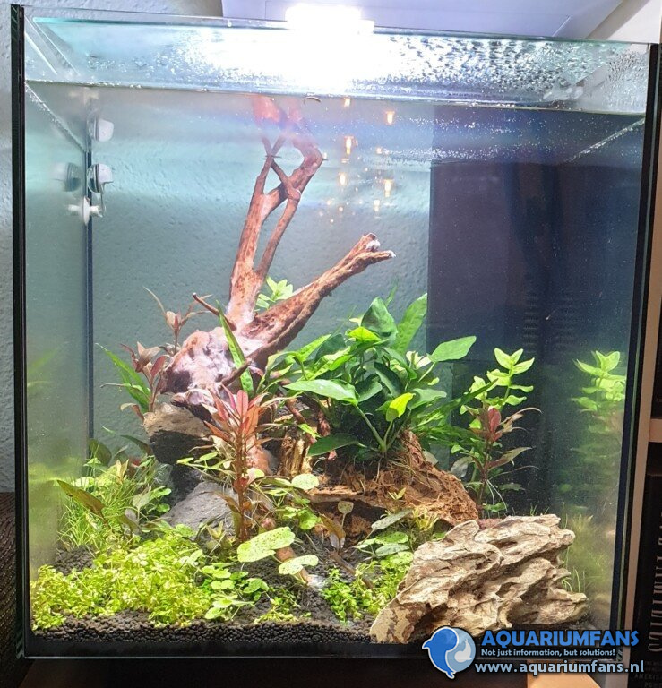 - Dat was alweer wat jaartjes geleden en sinds kort heb ik het aquascapen ontdekt. Toen heb ik mezelf overgehaald het qua inrichting ook echt goed te doen nu. (Eerder altijd de plantjes met pot en al gewoon her en der neergezet)