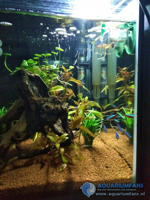 - Begonnen met een superfish aqua 40 panorama met 10 kardinaal tetra's. Naar een half jaar alles ok planten vissen gezond, overgezet in superfish home 25 xl (toch wat te klein) ?.