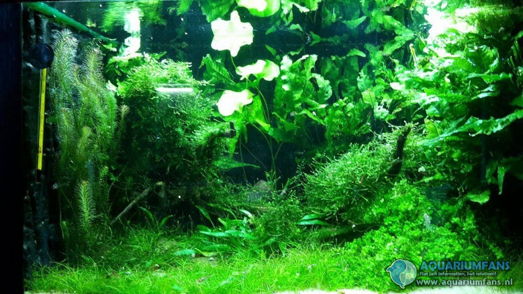 Mijn ideale plantenbak bestaat uit een "georganiseerde chaos". Ik laat de planten zoveel mogelijk hun gang gaan voor zover zij elkaar of de vissen niet in de weg zitten.