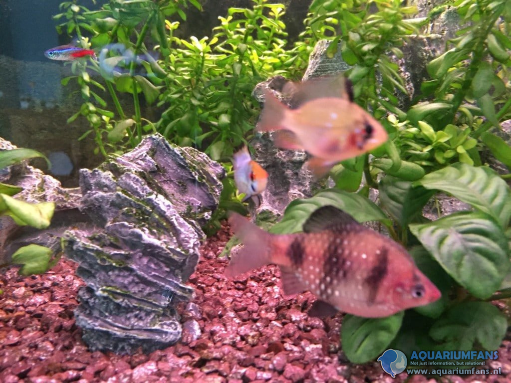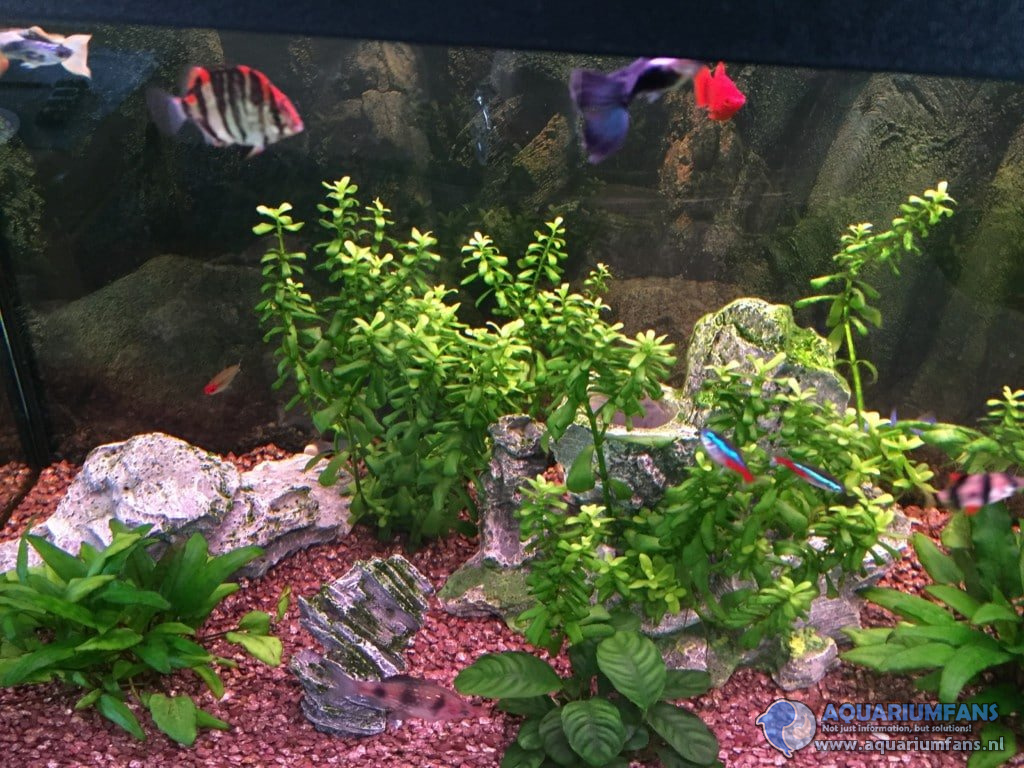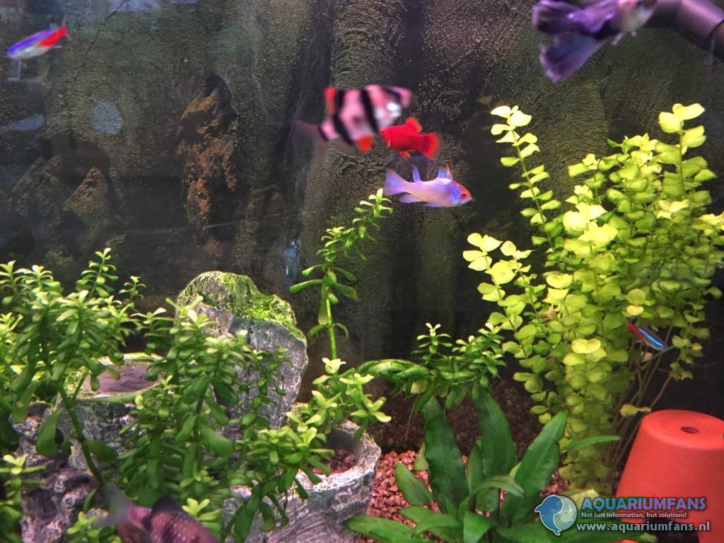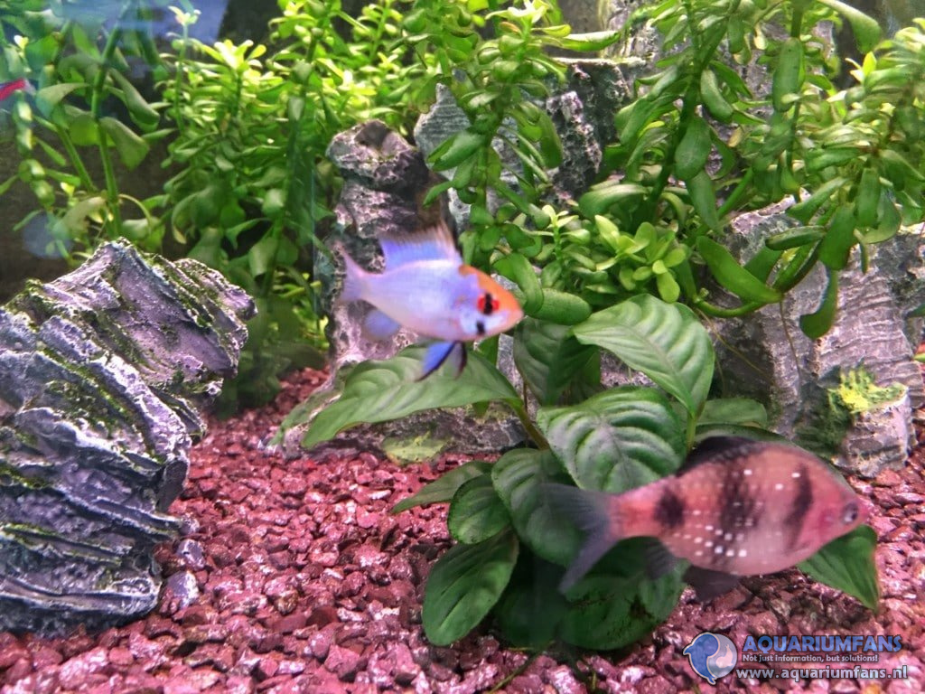 1. Leuk aquarium. Wel wat veel verschillende vissoorten door mekaar heen. Die Sumatraan moet veel soortgenoten om zich heen hebben en de Ramirezi’s moeten in een stelletje gehouden worden. Haal je de planten wel uit de potjes voordat je ze in de grond zet? Regelmatig wat water verversen lijkt mij een goede zaak !! Heel veel plezier met de hobby !!