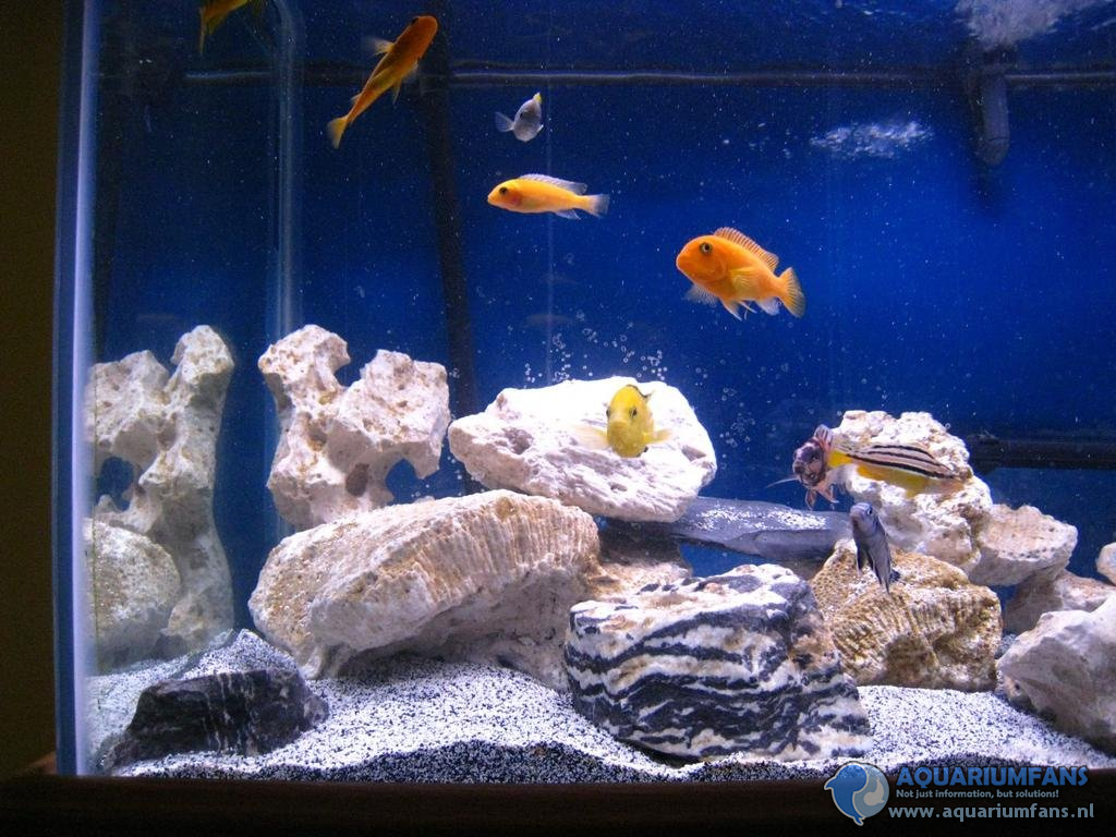 Omdat dit ook voorkomt in de natuurlijke omgeving van mijn Cichliden. Ik wil dat ze zich goed thuis voelen. Een manier om dat te doen is om de natuurlijke omgeving na te bootsen. De witte stenen geven ook iets schoons aan het aquarium. Bovendien steken de kleuren van de Cichliden daar mooi tegen af.