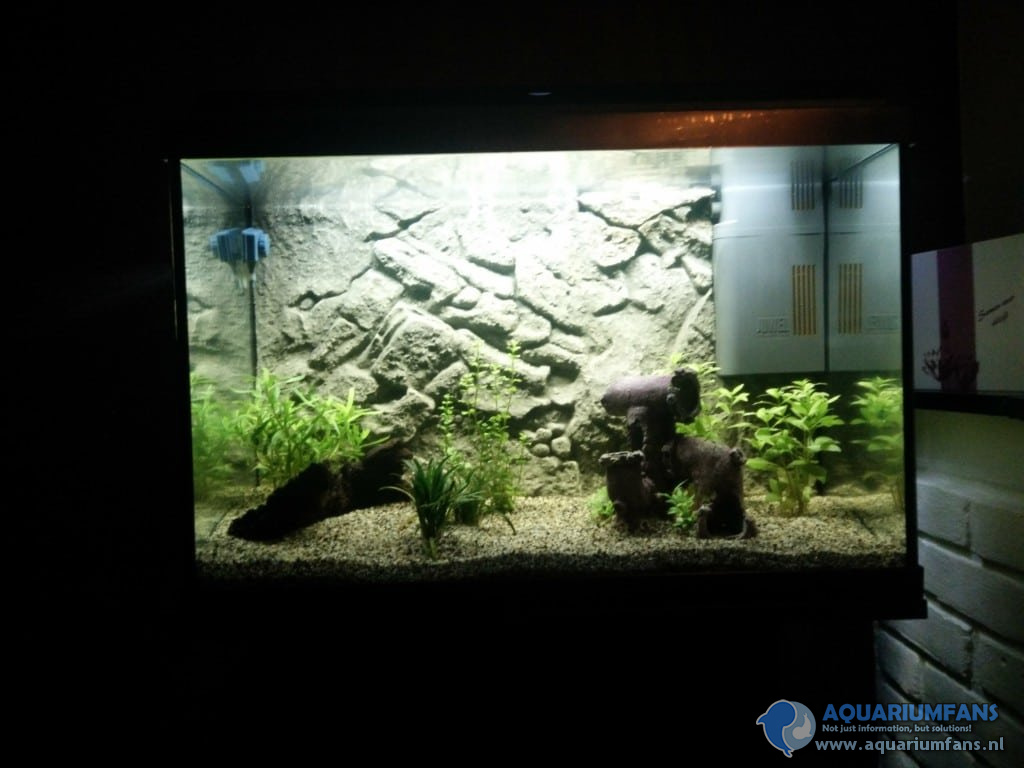 Vissen met een hengel is al vanaf jongs af aan een hobby van me. Sinds ik m'n eigen huisje heb speelt er al langere tijd de gedachte door mijn hoofd dat ik een aquarium wil, maar vanwege de verplichtingen die een aquarium met zich mee brengt was ik er nog niet aan begonnen. Helaas zit ik om gezondheidsredenen een tijdje thuis(inmiddels weer herstellende) en ik kreeg in die tijd een kempvis cadeau en sindsdien omdat ik toch tijd over had ben ik me gaan verdiepen in de wereld van een aquarium houden. Uiteindelijk heb ik een aquarium aangeschaft en ben ik dus gestart, nu een week geleden.
