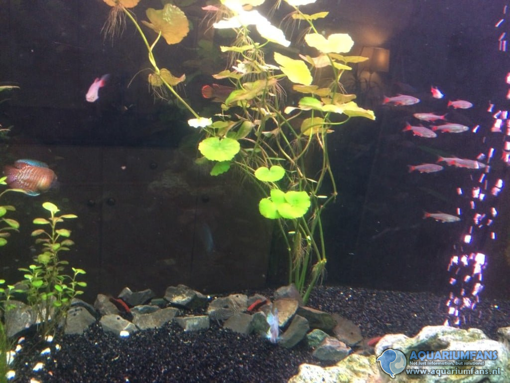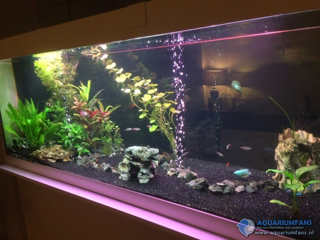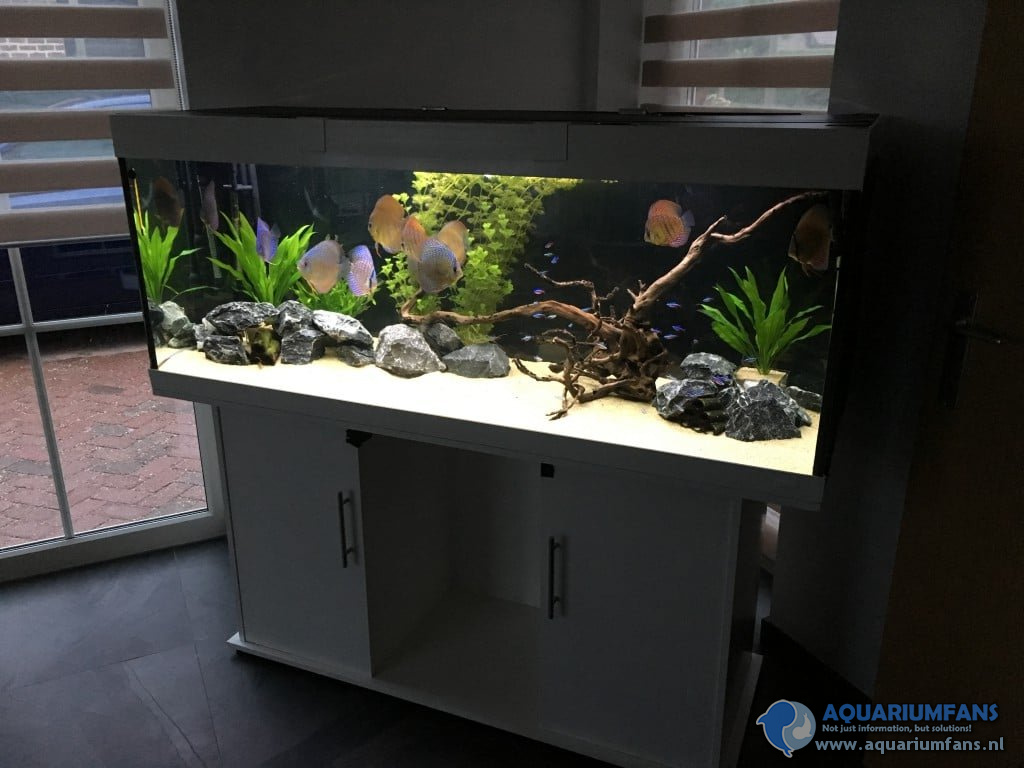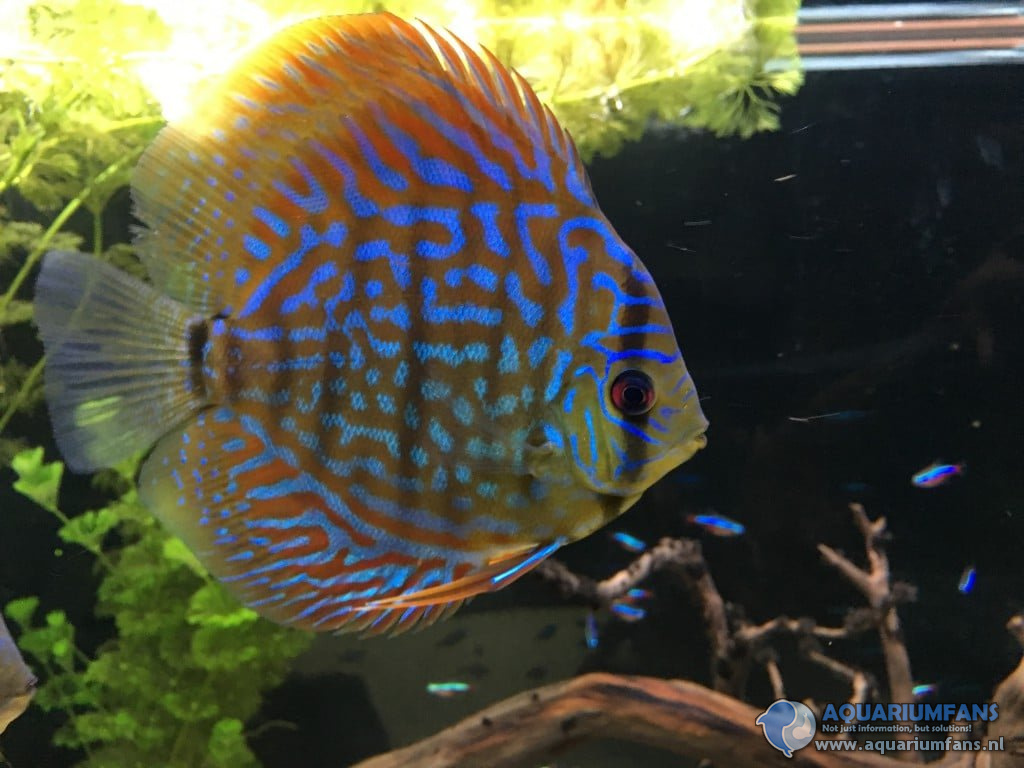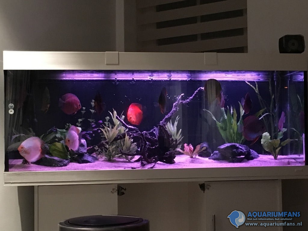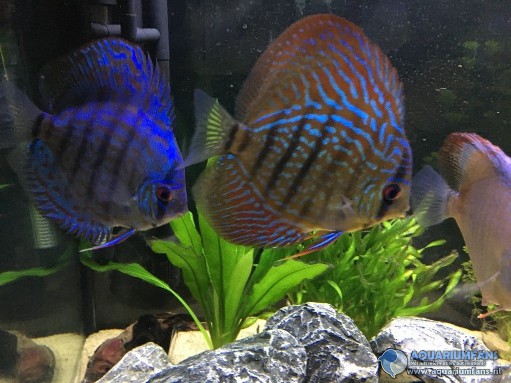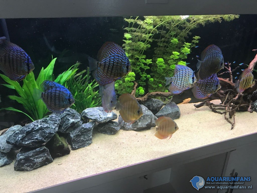 Inmiddels ben ik verhuisd en is mijn aquarium opnieuw ingericht en heb ik er 10 discussen in zitten. Ik heb er nieuwe foto’s van toegevoegd.