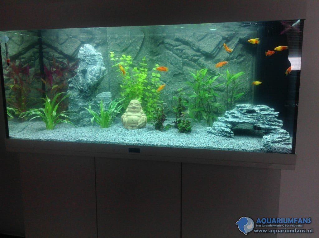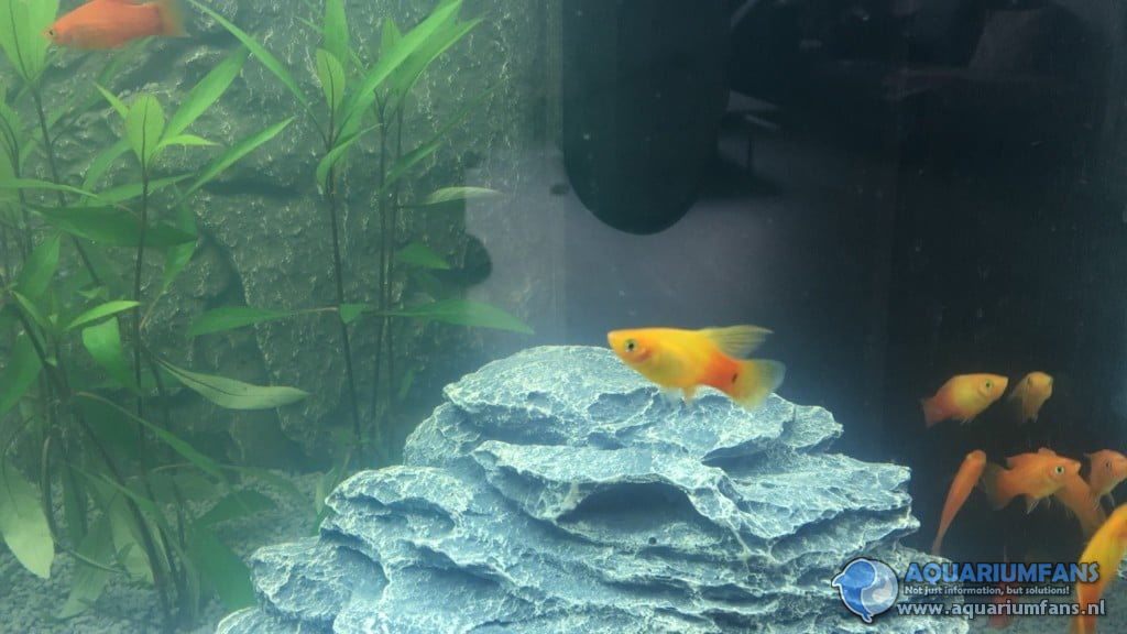 Tot nu toe mijn platys, aangezien zij er nog als enige in zitten. Over een tijdje wil ik een schooltje neontetra's erbij en wat vuurgarnaaltjes.