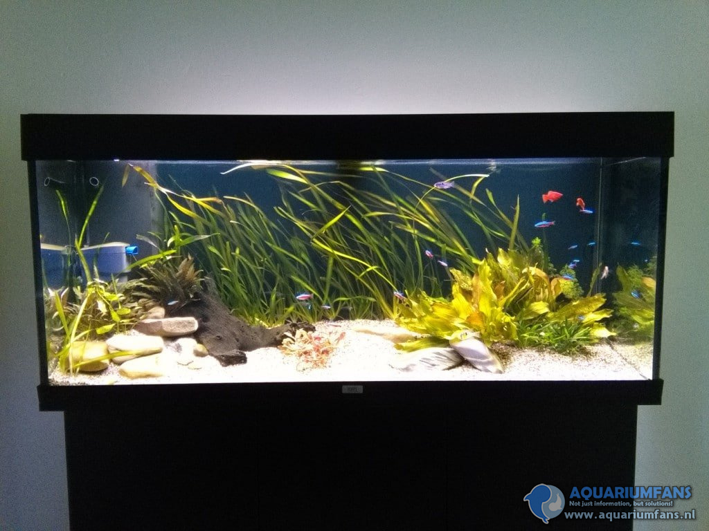 1. Een jonge aquariaan met grootse plannen. Die torpedobarbeel past inderdaad echt niet in dit aquarium. Buiten dat moet je er wel een stuk of 8 – 12 van hebben in een school. Persoonlijk vind ik je bodem heel erg wit. Kardinalen houden wel van wat donkerder ondergrond. Kijk uit met het overdoseren van vloeibare CO2. Vooral Vallisneria houdt daar niet zo van. Antennebaarsjes zijn ook wat mij betreft prachtige vissen !! Succes !!